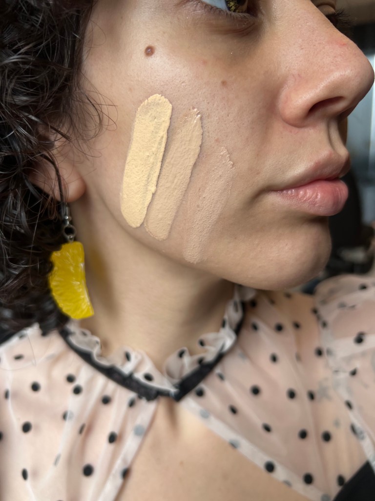 Quando você for testar uma nova base, você vai aplicar dois ou três tons que acha semelhante ao seu na região da mandíbula (Nada de testar base em pescoço/pulso, não rasga o coração da maqui aqui! Essas regiões costumam ser pelo menos dois tons mais claros que o tom do rosto/colo por pegarem menos Sol).